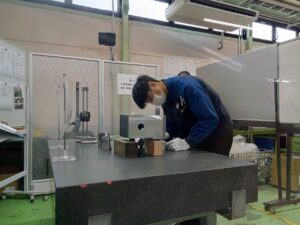 ノギス、マイクロメータ、シリンダゲージなどを使い、図面の寸法公差と向き合う“ミクロンの世界”です。
